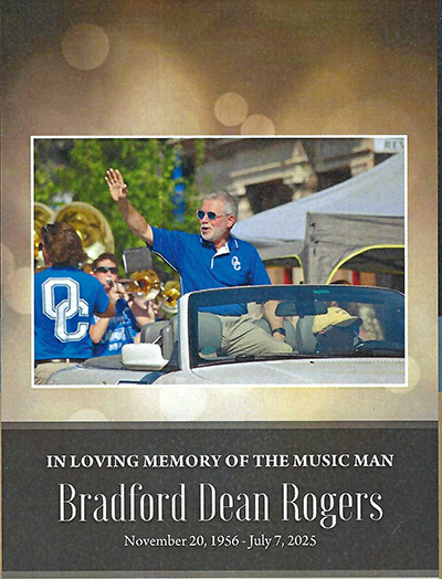 OCHS was sadden by the news that our previous long time Band Director of 34 years, Brad Rogers, died on July 7, 2025 while in France with a group of OCHS Band members and parents. Our prayers are with Patricia, his wife of 45 years as well as his daughters Brianna and Lauren.